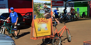 Ação de marketing promocional, com uso de bikedoor e panfletagem.
